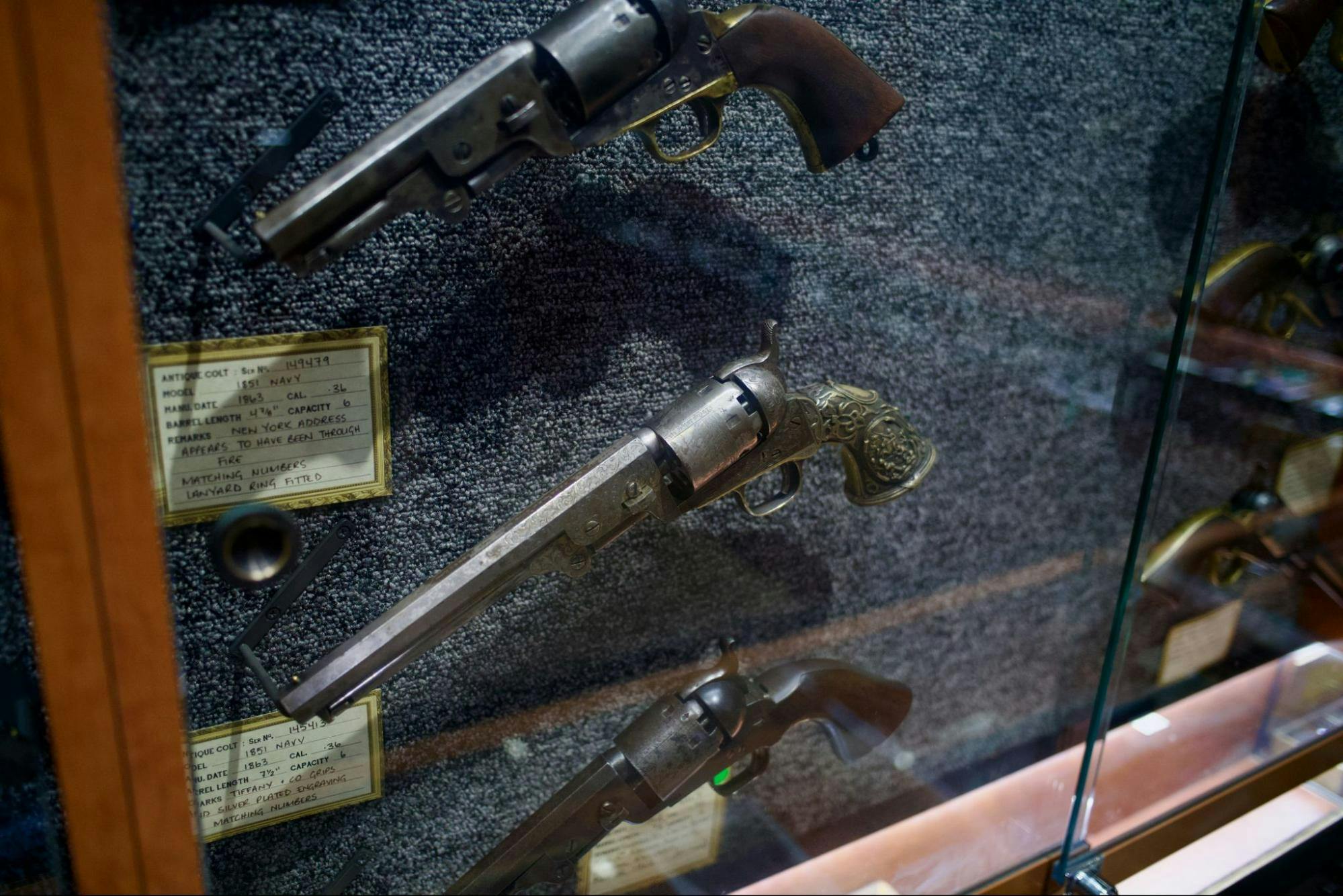 Few are more deeply versed in the country's legacy of gun ownership or have a finger more tightly on its contemporary pulse than Cleaver. In one room of the store's labyrinthine interior, he shows off his dad's collection of 19th-century Colt handguns, many of them shipped to Australia in colonial times. There are sidearms used by the New South Wales Police, two original Walker pistols (of just a couple hundred in existence, according to Cleaver), three guns customized for Tiffany & Co. and an 1851 Navy revolver so early in its line of production that it bears a serial number of just a single digit. "This is Australian history," Cleaver said.